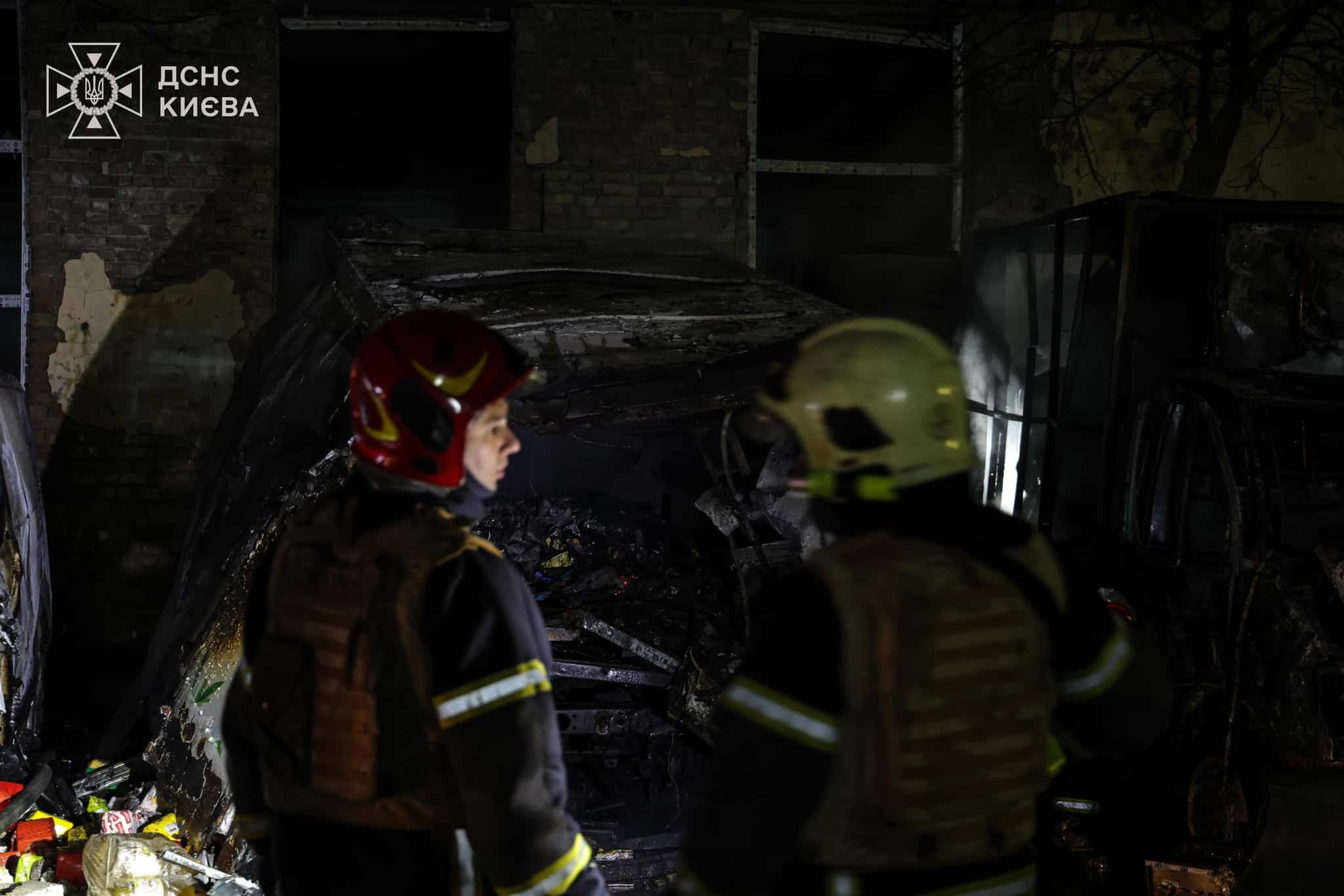 У ДСНС повідомили, що рятувальники виїжджали на два виклики через російську атаку. Під час одного з них у столиці горіли чотири автомобілі.
