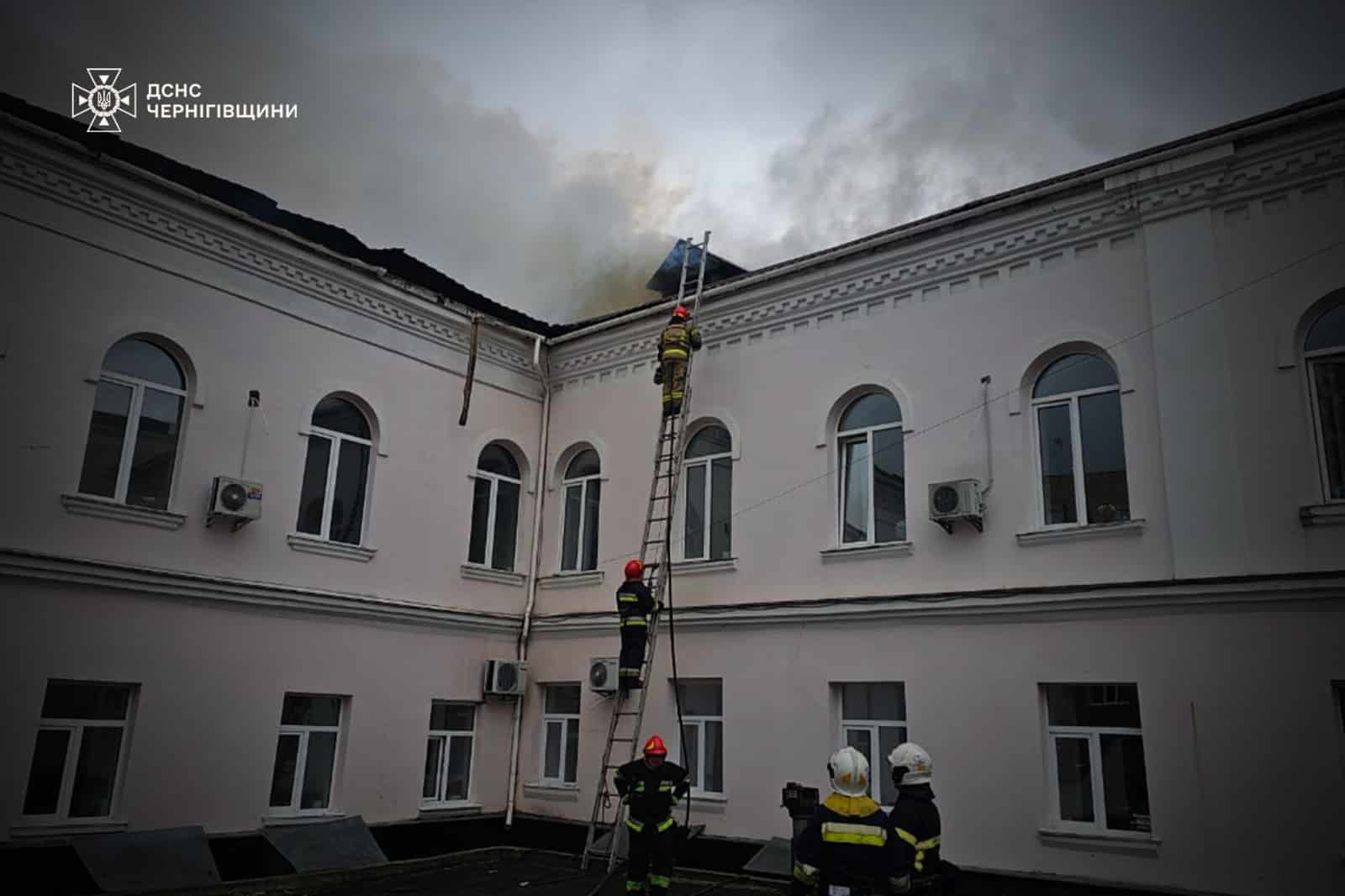 За інформацією видання, один із безпілотників влучив у будівлю Прилуцької міської ради. Унаслідок цього загорівся другий поверх. На момент удару в приміщенні відбувалося засідання виконавчого комітету.