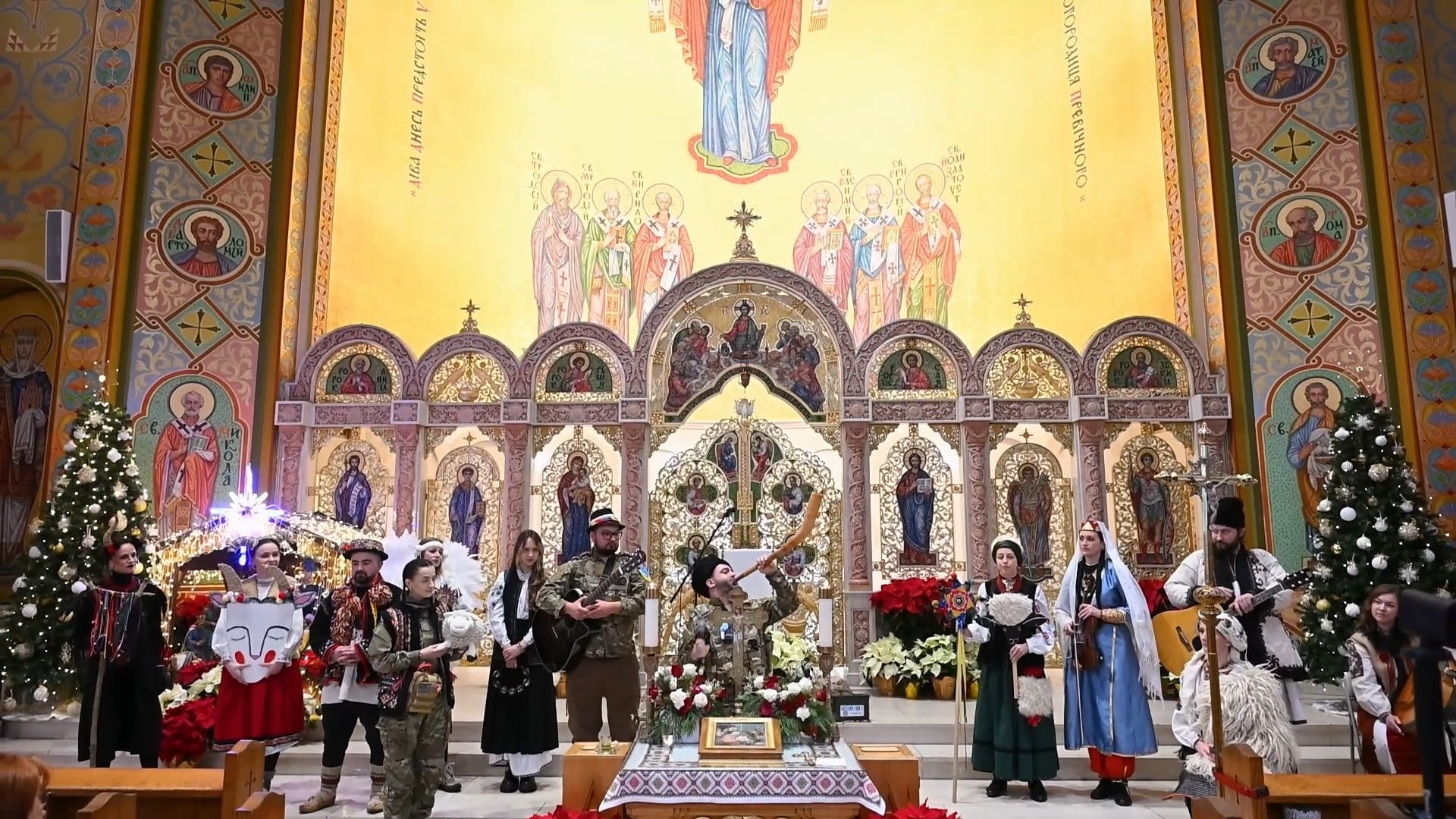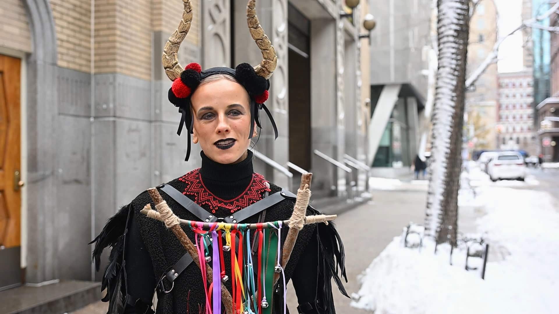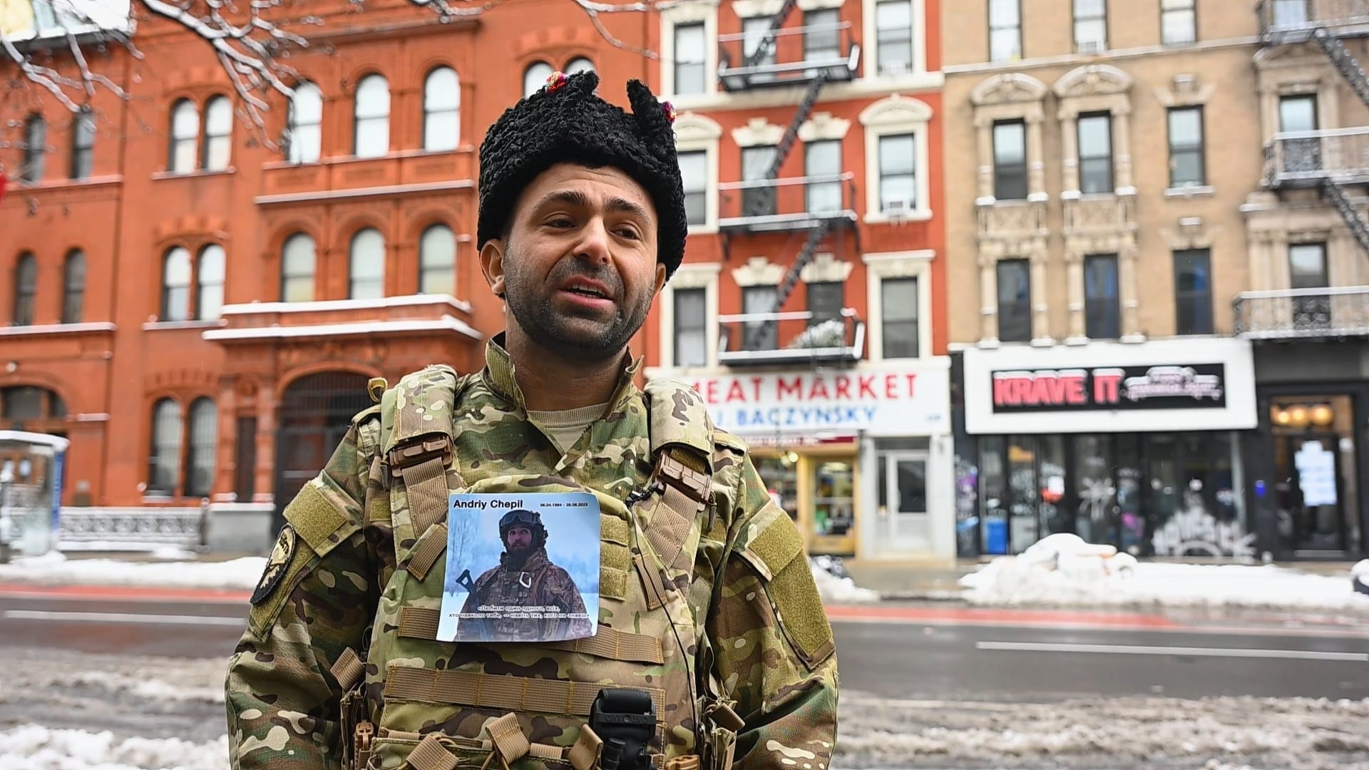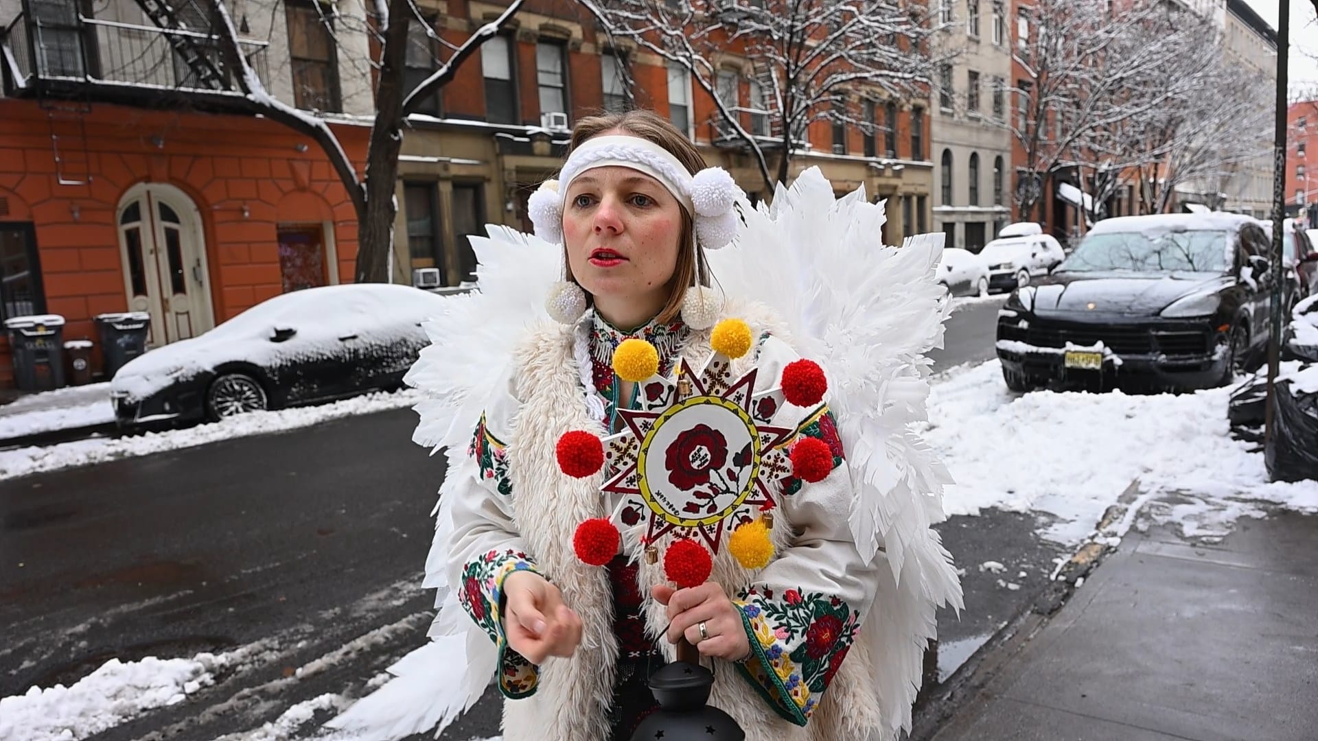 Український вертеп рухається вулицями так званого Українського села на Мангеттені. Перша зупинка — культова для діаспори м’ясарня Бачинського. Колядники вітають зі святами працівників і відвідувачів крамниці, а між колядками звучить головне — історія України, яка воює.