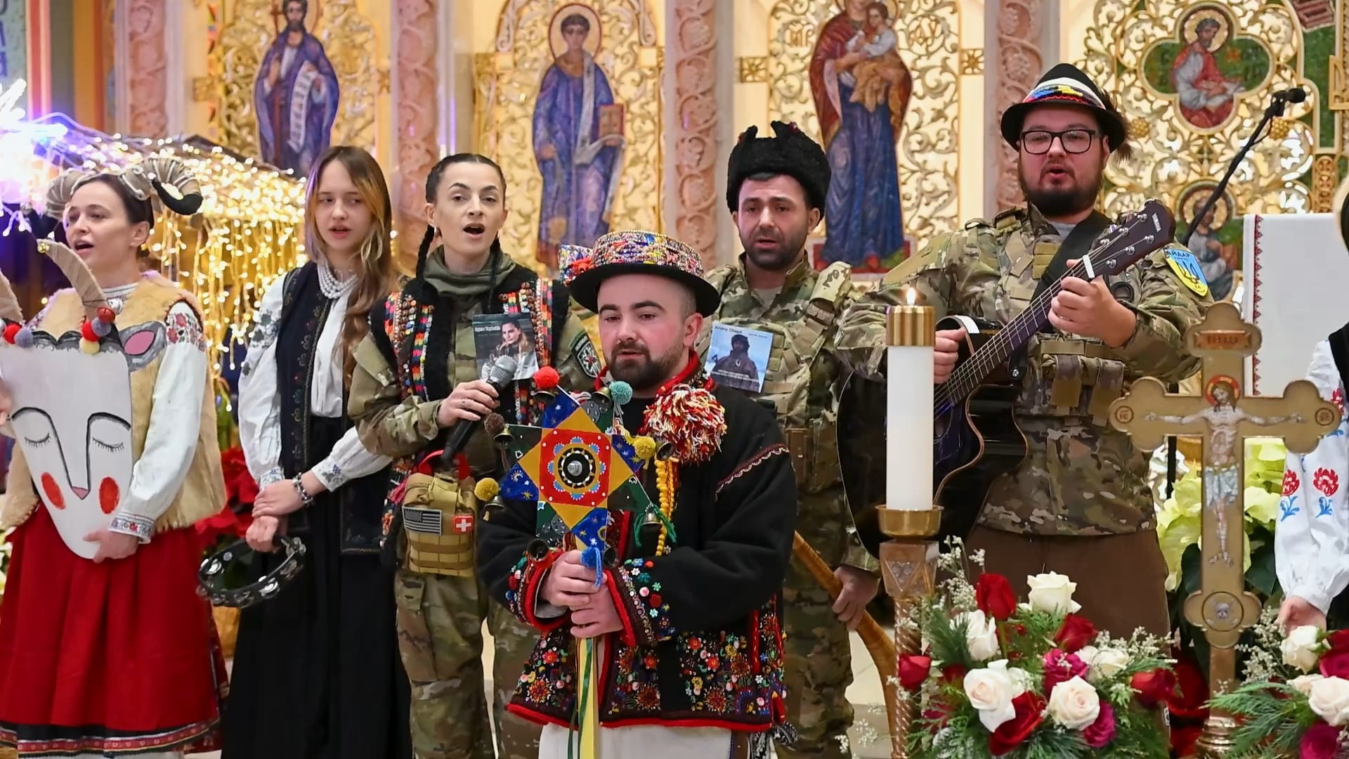 Один з учасників вертепу, іванофранківець Василь Боднар, зображає образ, присвячений своєму другові —, який загинув у боях за Україну.