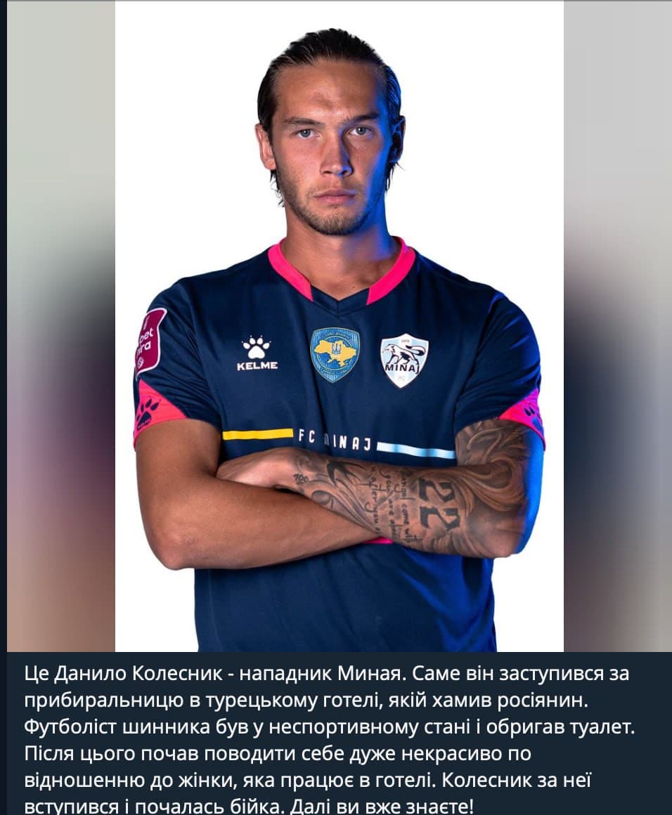 Адвокатка гравця Станіслава Ковальська повідомила про нанесення її клієнту тілесних ушкоджень працівниками ТЦК та опублікувала у Facebook фото футболіста із синцем під оком. За її словами, у Колесника також вилучили мобільний телефон.