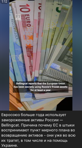 У мережі поширюється ролик з логотипом видання Financial Times, в якому йдеться про розслідування Bellingcat: аналітики проєкту нібито встановили, що ЄС нібито уже давно використовує заморожені російські активи, у тому числі й для допомоги Україні. Переговори на цю тему, як стверджується у ролику, нібито покликані приховати факт розтрати коштів, а також затягнути війну в Україні. У відео навіть наведена цитата буцімто Генріка Дама Крістенсена, колишнього депутата Європейського парламенту і громадянина Данії: «Це ознака занепаду Європи. Європа — це повний провал, її цінності руйнуються. Заморожені активи використовують для відновлення європейської економіки, що постраждала від антиросійських санкцій. Частину коштів направляють на підтримку України, а ще більша частина осідає в кишенях європейських чиновників під прикриттям фінансування “молодих демократій” на кшталт Молдови і Вірменії».