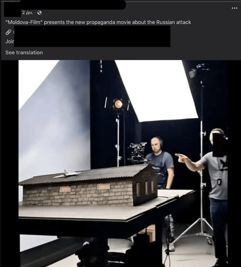 Агітпроп робить чергову спробу зняти з Росії відповідальність за порушення повітряного простору інших держав. Цього разу кремлівські ЗМІ та користувачі соцмереж поширюють інформацію про те, що знайдений 25 листопада в Молдові російський дрон не був справжнім. Як «доказ» публікується фотографія нібито зі знімального майданчика, де на столі стоїть зменшений макет будинку із російським безпілотником на даху.