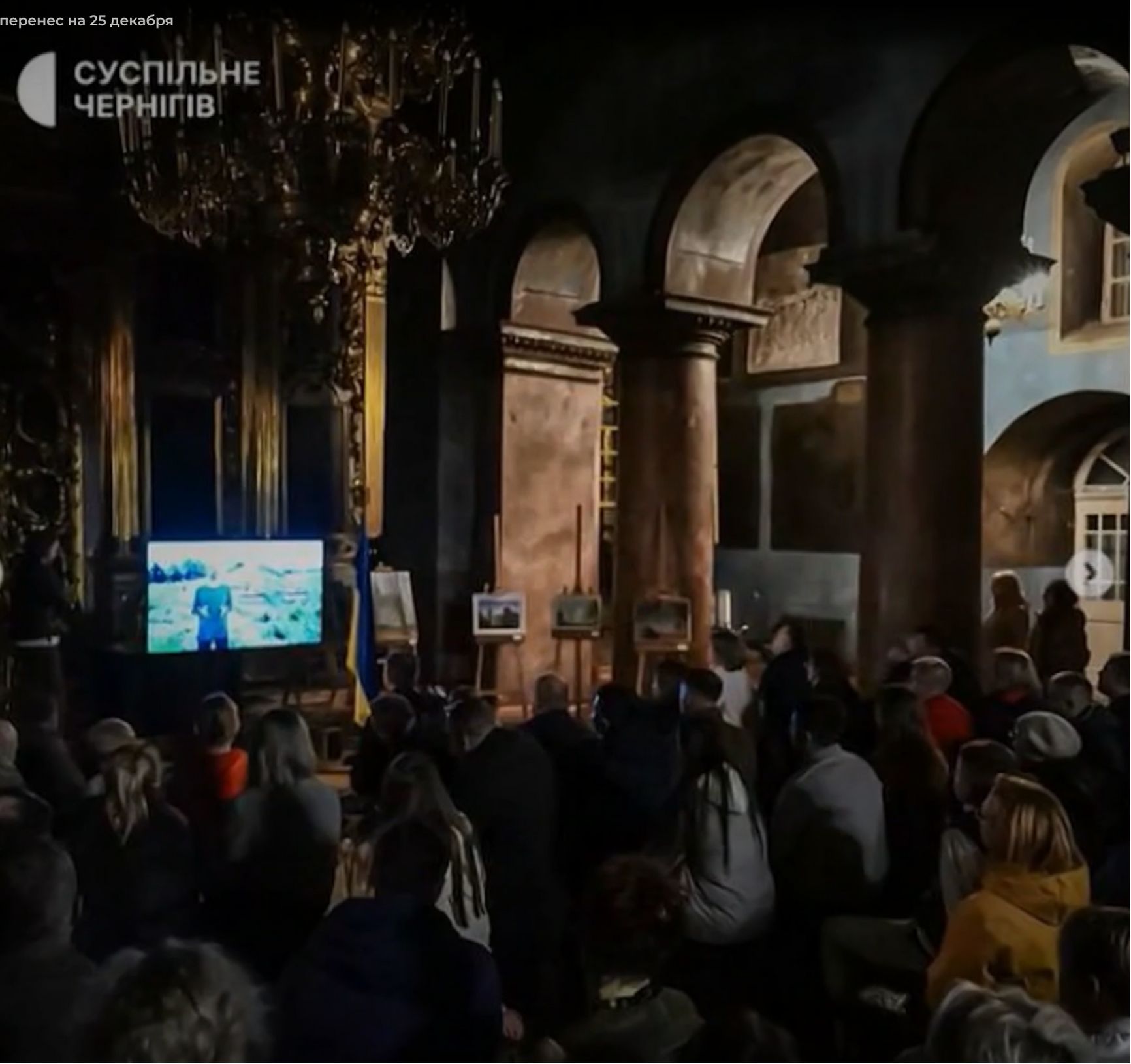 У кінотеатр собор, звісно, не перетворювали, та й на кадрах, показаних Першим каналом, видно, що там лише встановили телевізор. Було це 1 листопада 2024 року, коли у храмі, тимчасово відкритому для відвідувачів музею, організували презентацію документального фільму «Чернігівське князівство. 1000 років».