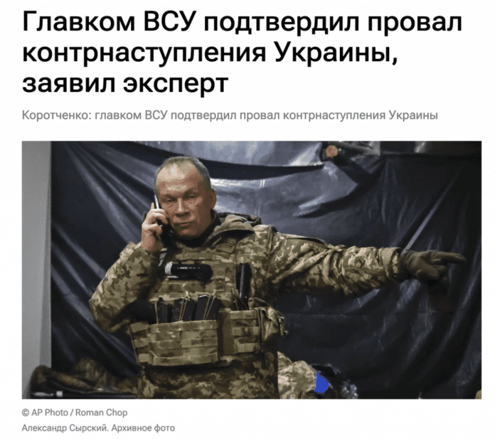 Російські ЗМІ поширили нову дезінформацію про Збройні сили України, основану на інтерв’ю головнокомандувача ЗСУ Олександра Сирського. Вирвавши з контексту висловлювання генерал-полковника, російські ЗМІ повідомили, що Сирський нібито «визнав провал літнього контрнаступу Валерія Залужного». Також агітпроп пише: «Заяви Сирського підтверджують, що стратегічна ініціатива перейшла до російських військ».