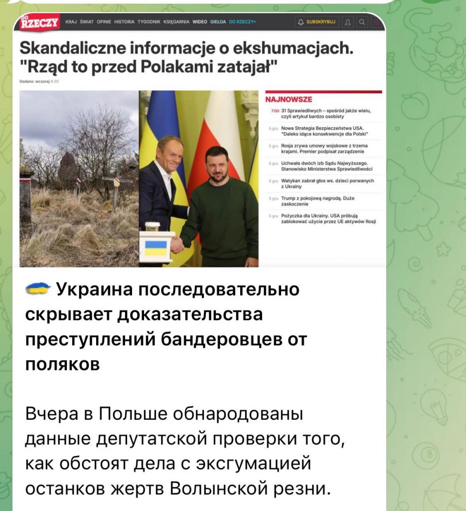 Про блокування процесу ексгумації жертв Волинської трагедії не йдеться — наразі Польща готується розпочати пошуково-ексгумаційні роботи в селі Кути Рівненської області. А в середині листопада 2025 року було здійснено поховання солдатів польської армії, які загинули у вересні 1939 року під час оборони Львова.