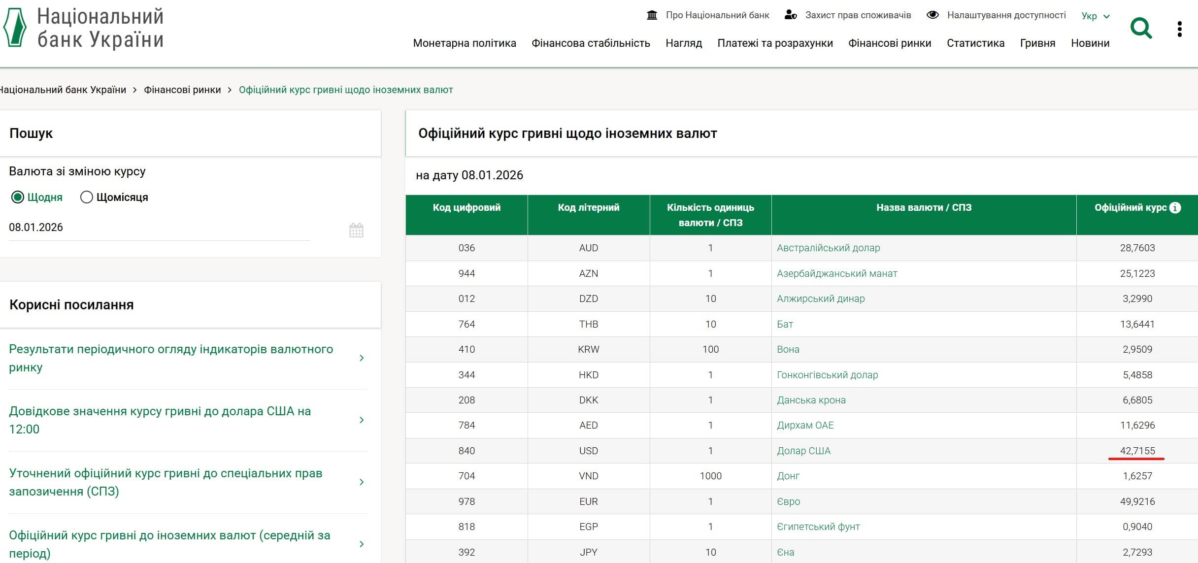 ☝️ Напередодні Національний банк України підвищив офіційний курс долара на 15 копійок — до 42,7155 гривні, що також стало новим історичним максимумом. Офіційний курс євро зріс на 12 копійок і встановився на рівні 49,9216 гривні.