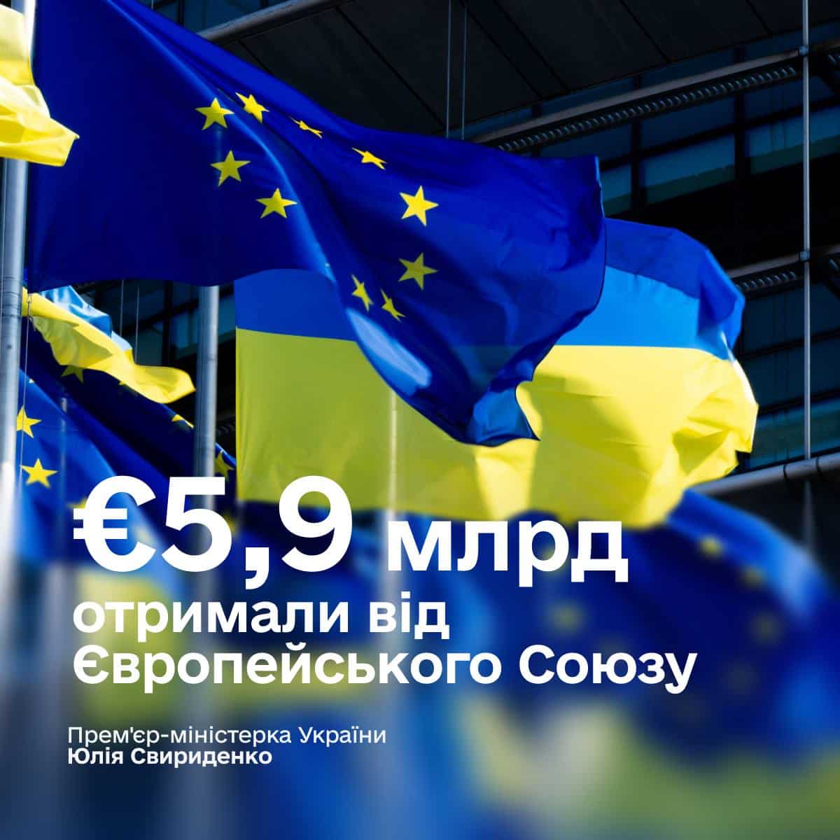 Євросоюз надав Україні черговий транш фінансової допомоги на суму 5,9 мільярда євро. Про це у четвер, 13 листопада, повідомила прем’єр-міністр Юлія Свириденко у своєму Telegram-каналі.