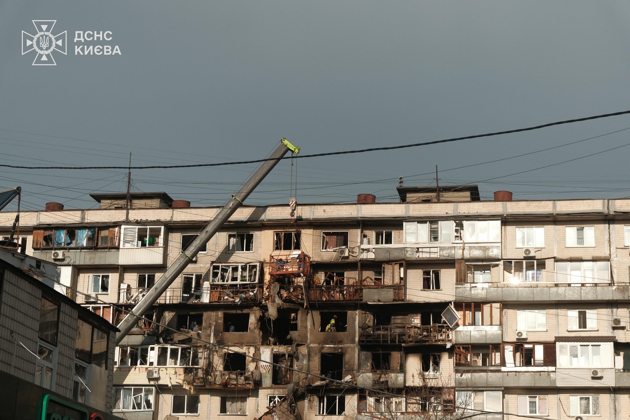 - Значні пошкодження незаселеного багатоповерхового будинку.