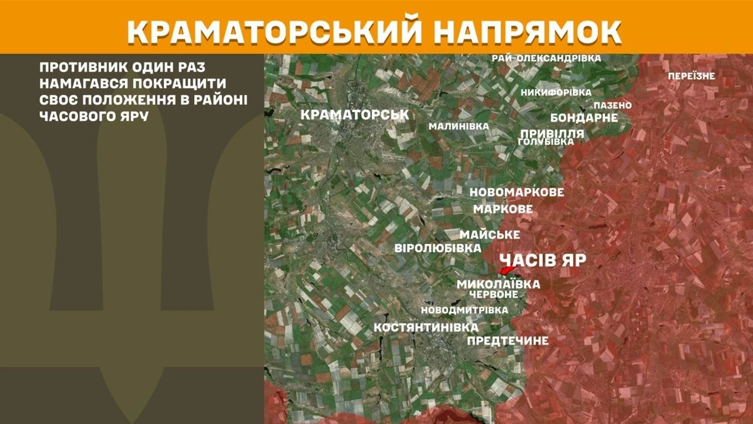 На Краматорському напрямку противник один раз намагався покращити своє положення в районі Часового Яру.