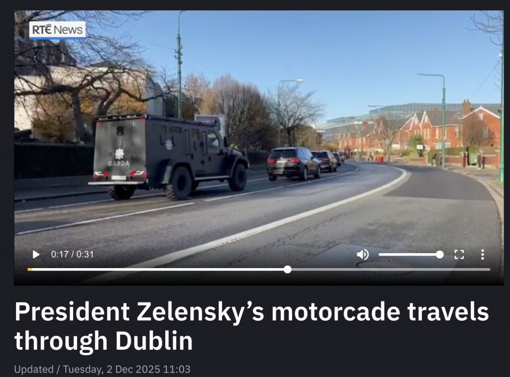 Що стосується відео з кортежем і зброєю біля відчиненого вікна автомобіля — то тут взагалі не йдеться про якісь «надмірні дії» чи порушення норм забезпечення охоронних заходів під час таких візитів. Озброєні охоронці в машинах ескорту з відчиненими вікнами або кришкою багажника є стандартною міжнародною практикою захисту VIP-персон, що застосовується в кортежах будь-якого президента світу. Під час кожного візиту Зеленського до європейських країн запроваджуються масштабні заходи безпеки — так було в Таллінні, Дубліні, Берліні та інших містах — і це норма, а не виняток. Автори фейку не наводять жодного верифікованого джерела, яке б підтвердило «масову обурену реакцію» щодо охорони кортежу.