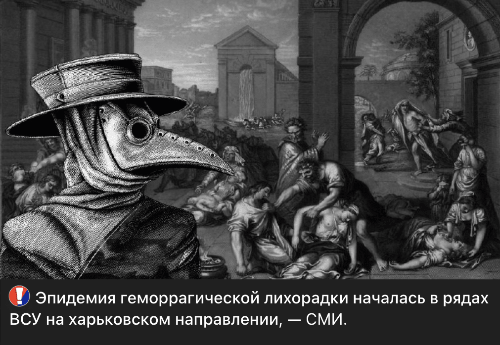 У російських медіа та соцмережах поширилася новина про нібито епідемію вірусу геморагічної гарячки, що спалахнула серед українських військових на харківському напрямку. Пропагандисти також заявляють, що командування навіть не евакуює інфікованих бійців з фронту.