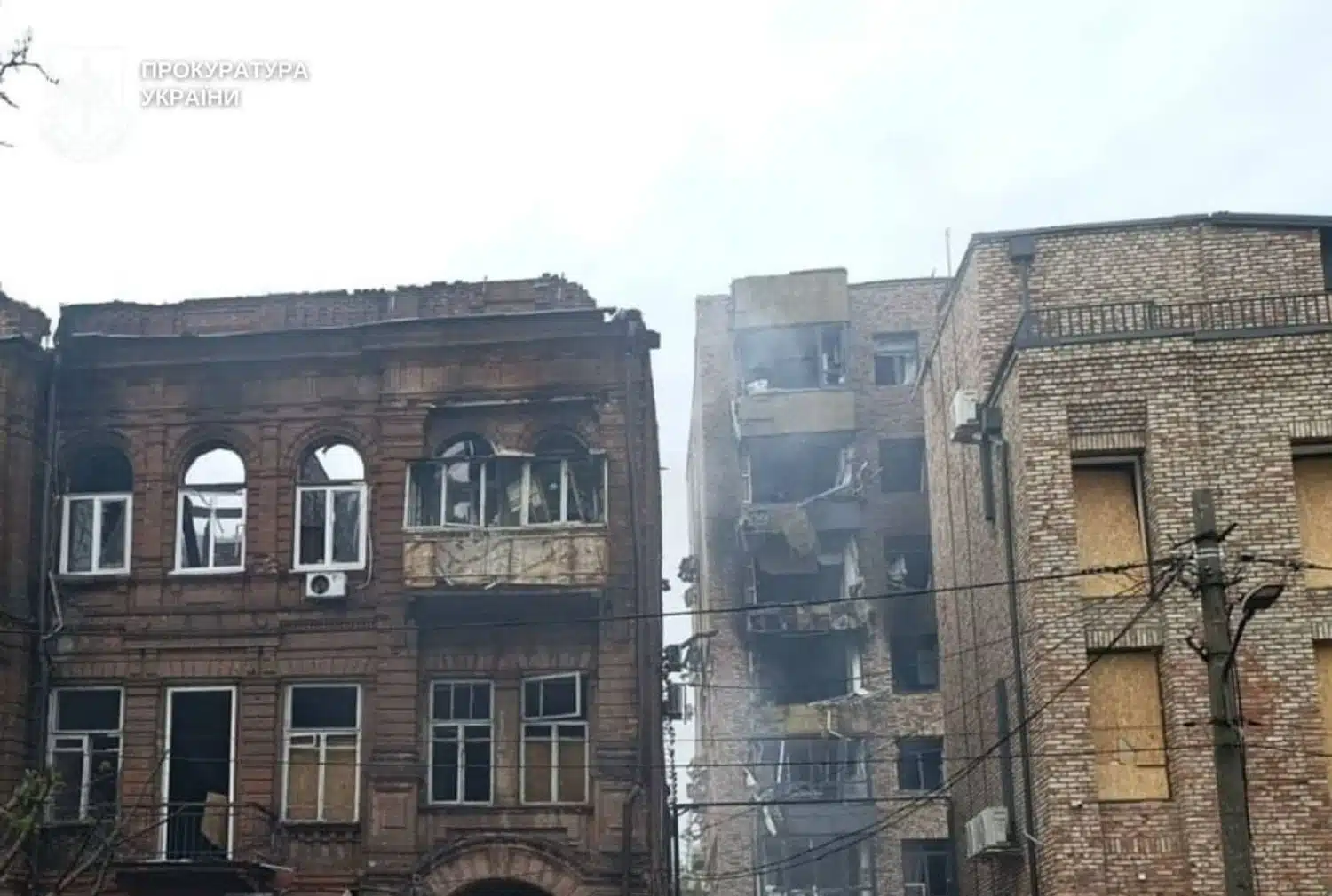 Пошкоджено об’єкти цивільної інфраструктури, навчальні заклади, хоспіс, гуртожиток, житлові будинки та транспортні засоби.