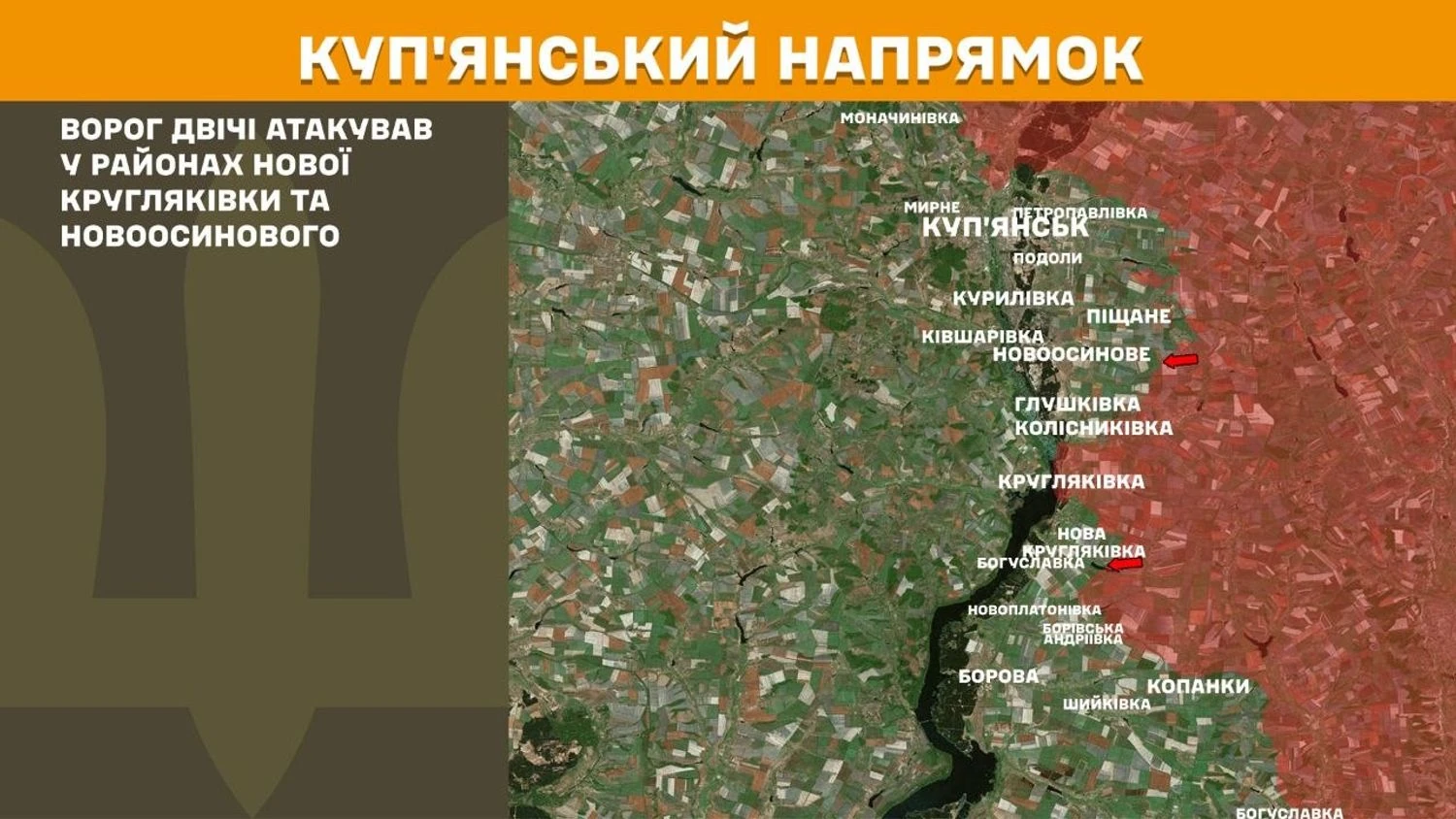 На Куп’янському напрямку ворог двічі атакував у районах Нової Кругляківки та Новоосинового.