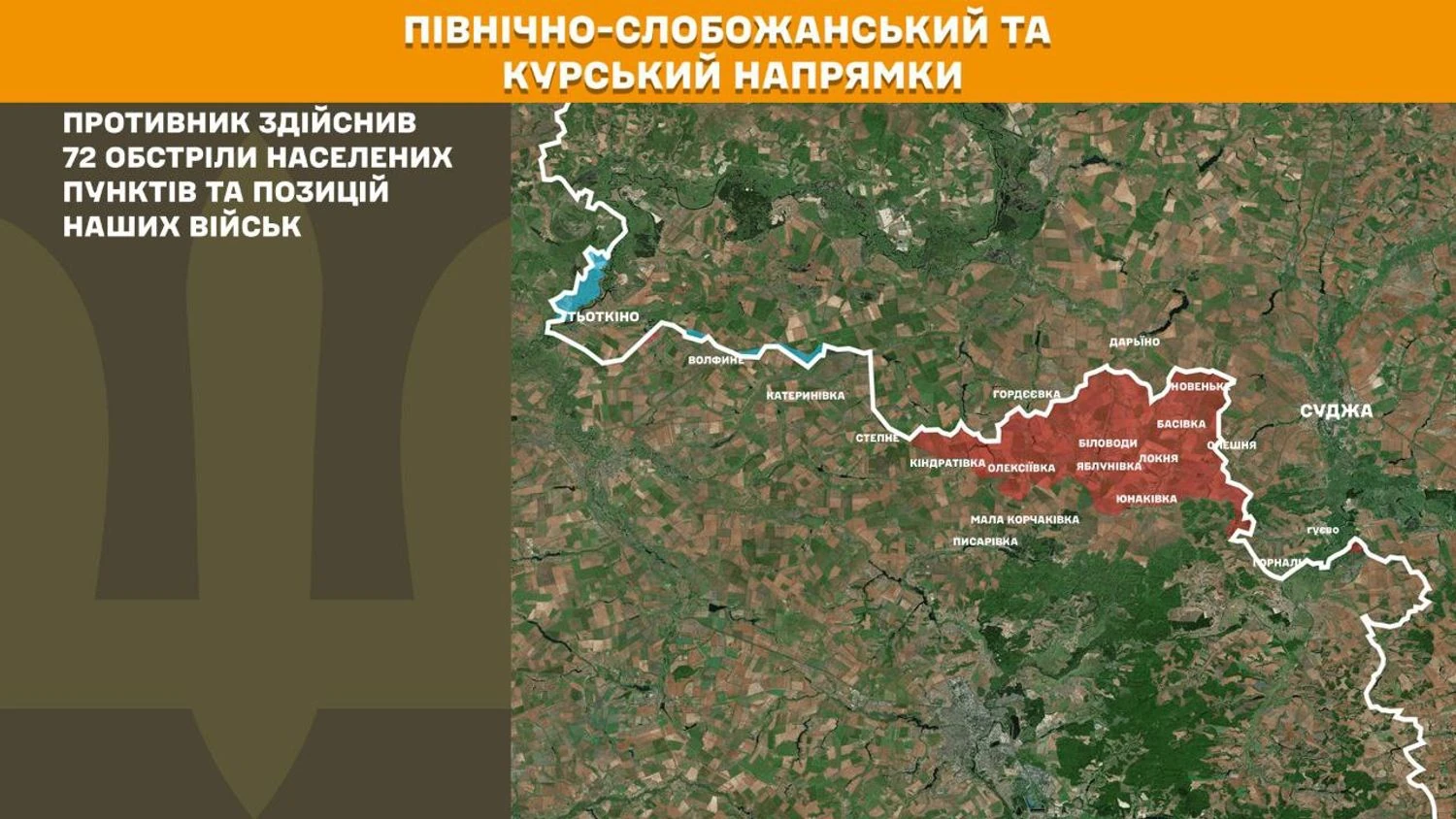 На Північно–Слобожанському і курському напрямках минулої доби противник здійснив 72 обстріли населених пунктів та позицій українських військ.
