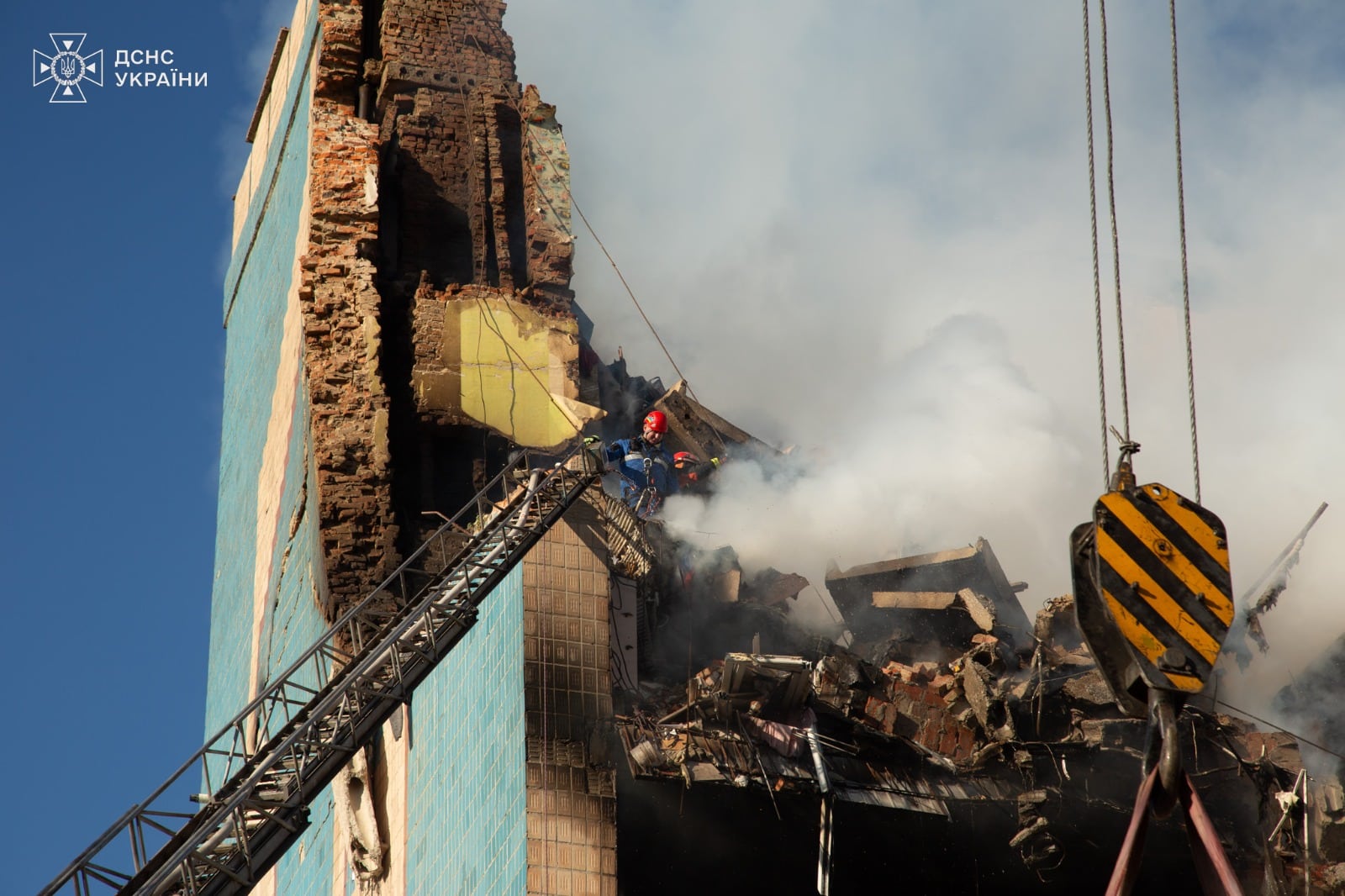 ✔️ На рівні між п’ятим і шостим поверхами вдалося почути та встановити контакт із 20-річним чоловіком. Він затиснутий у бетонних конструкціях, але живий.