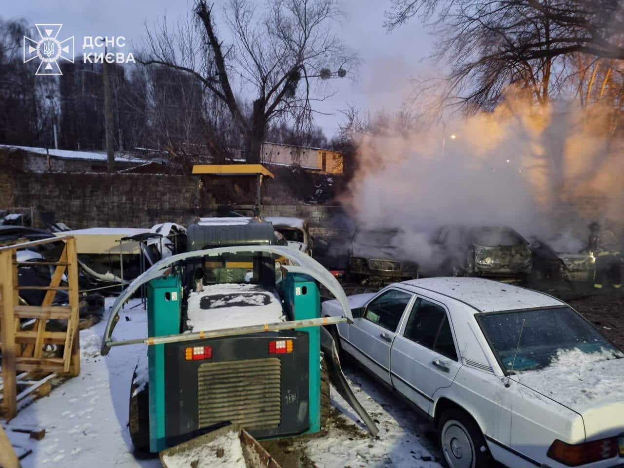 ⚠️ У Голосіївському районі падіння безпілотного літального апарата призвело до загоряння трьох автомобілів на території станції технічного обслуговування. Пожежу оперативно ліквідували.