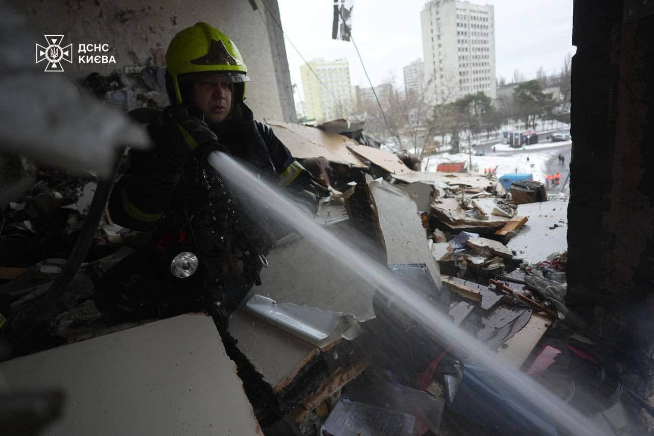 ⚠️ У Дніпровському районі зафіксовано влучання у кілька житлових багатоповерхівок. У 25-поверховому будинку рятувальники ліквідували пожежу, тривав розбір аварійних конструкцій. Також було загашено займання адміністративної будівлі.