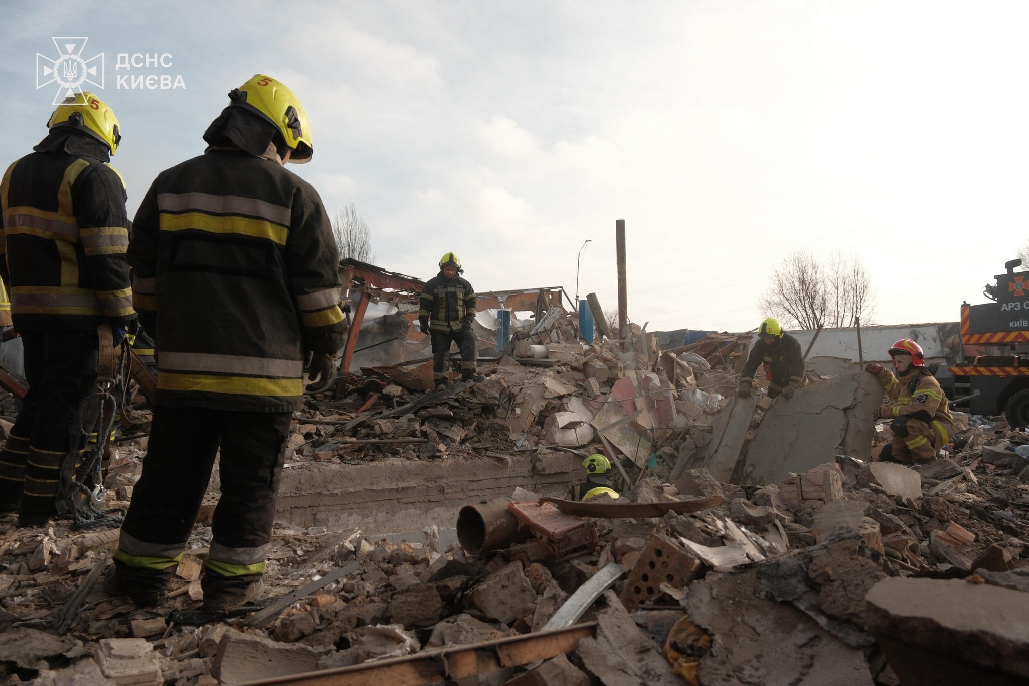 Окремо рятувальники працювали також у Деснянському районі, де продовжували розбирати завали будівель, пошкоджених під час атаки. Загалом до ліквідації наслідків у столиці залучили дев’яносто п’ять фахівців ДСНС та двадцять шість одиниць техніки. Серед них була й важка інженерна техніка, необхідна для розбору завалів багатоповерхівок.