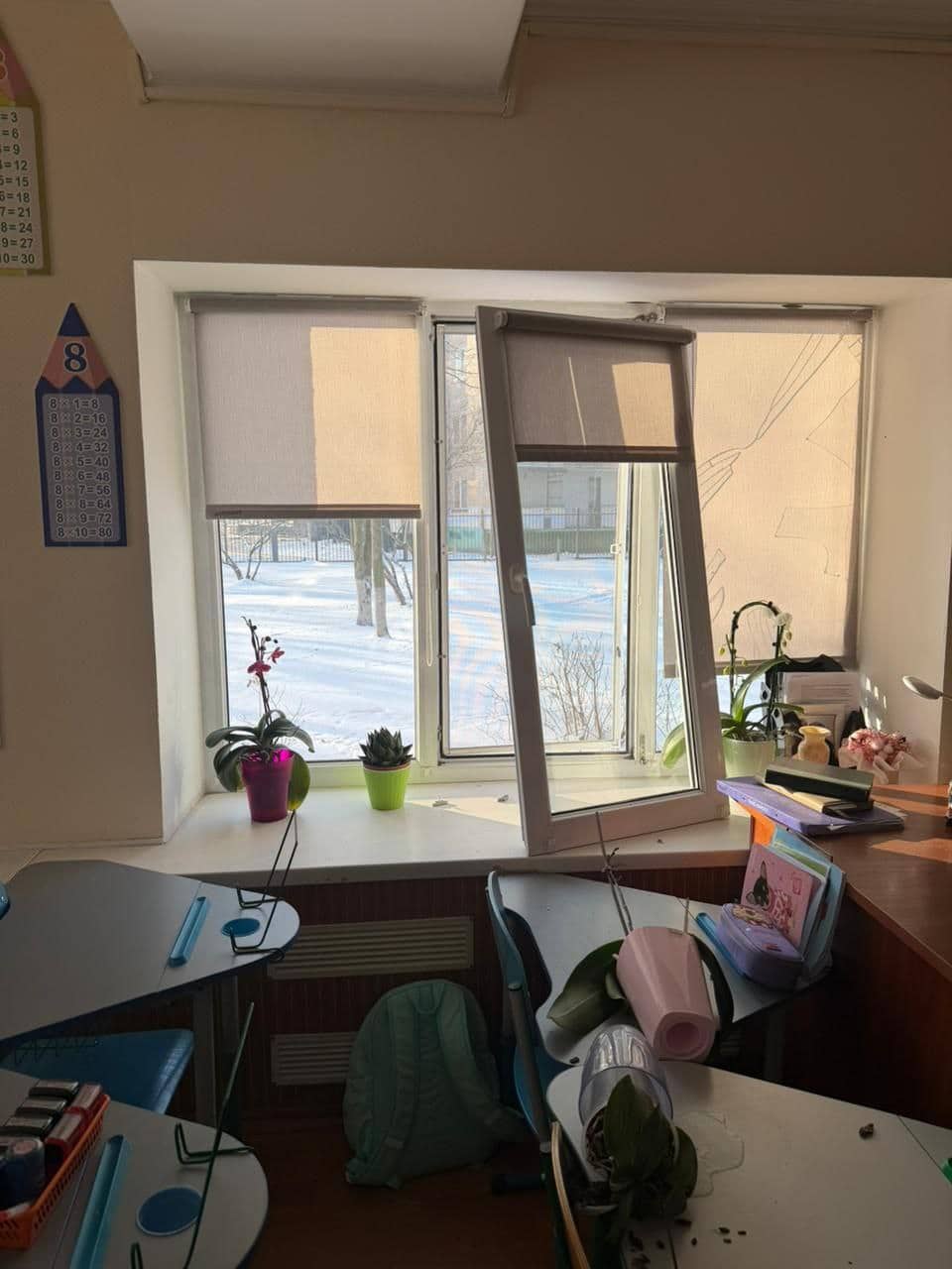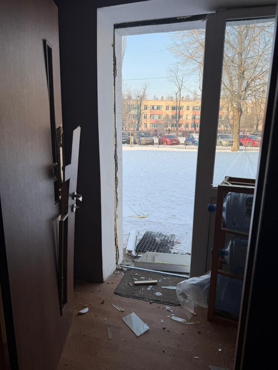 Внаслідок падіння уламків було пошкоджено будівлю початкової школи, вибито вікна в кількох житлових будинках. Окрім цього, уламки безпілотника впали на відкриту територію, що призвело до загоряння автомобілів.