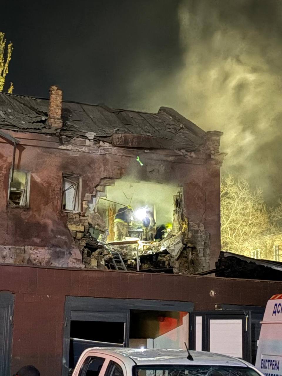- Триповерховий будинок: зруйновано квартири на 2-му та 3-му поверхах, сталася пожежа.