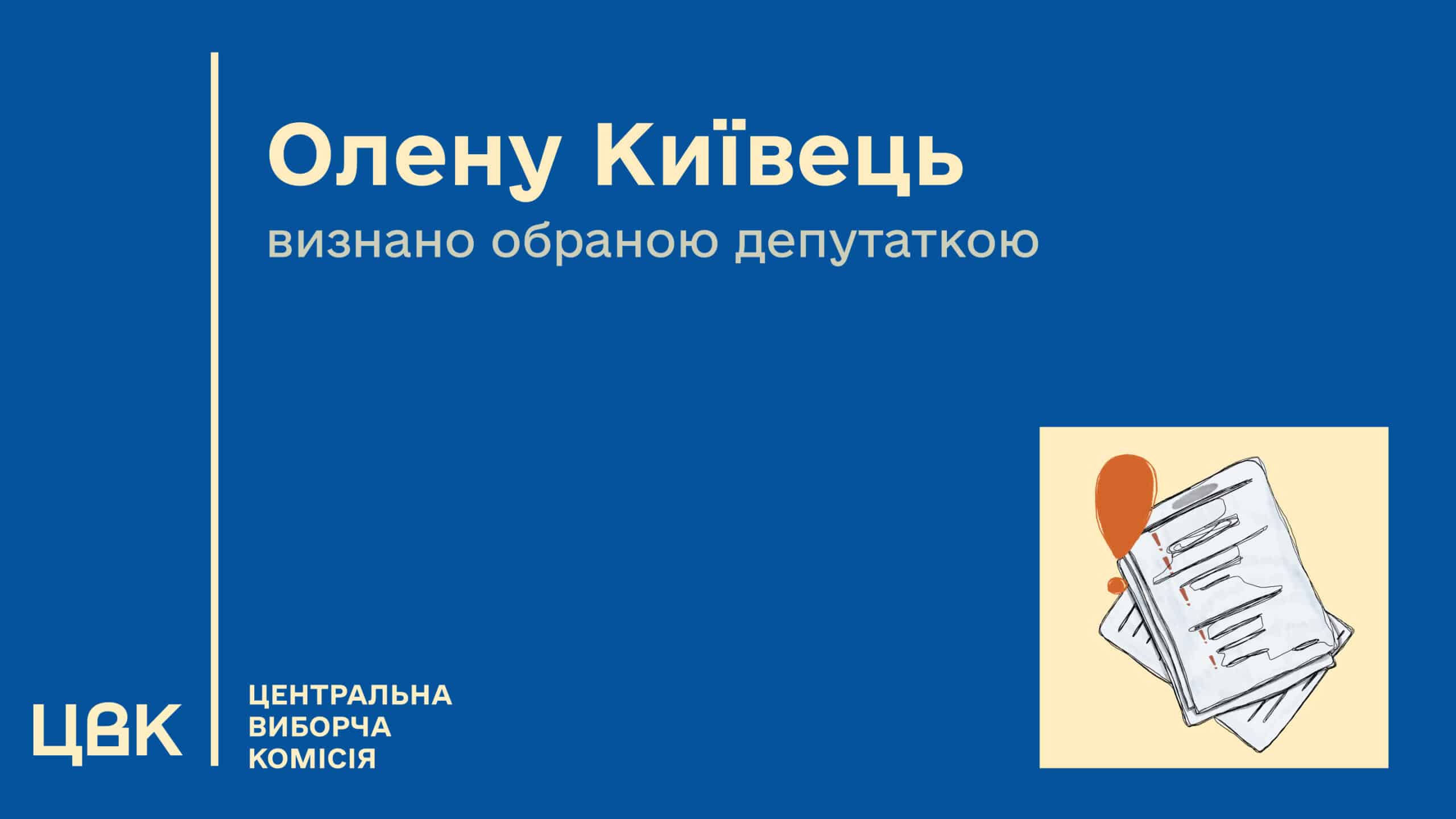 Центральна виборча комісія офіційно визнала Олену Київець обраною народною депутаткою України після дострокового припинення повноважень Дар’ї Володіної. Про це повідомила пресслужба ЦВК.