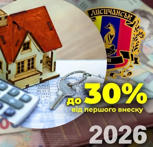 Лисичанська громада розширила програму компенсації першого внеску за іпотеку. З лютого 2026 року розширено умови участі в програмі підтримки за державною ініціативою «єОселя». Про це повідомила пресслужба Луганської обласної військової адміністрації (ОВА) у четвер. 19 березня.