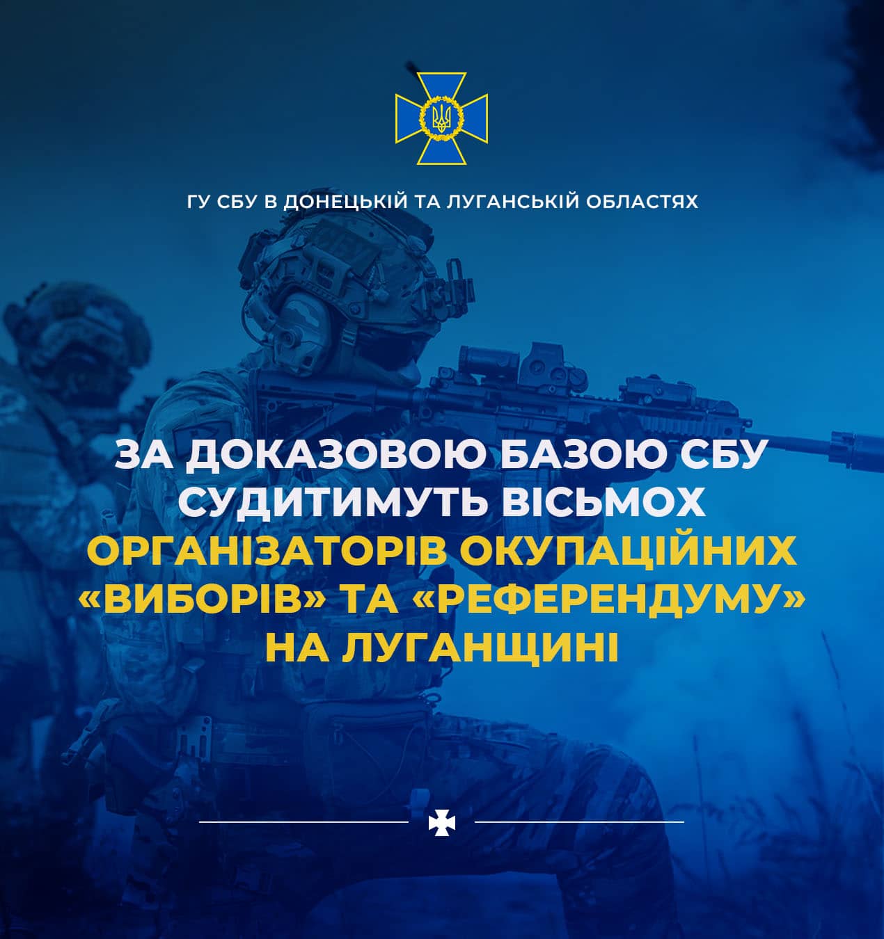 ☝️ Також СБУ довела причетність ще семи поплічників рф, які у 2022 р. проводили на Луганщині «референдум», у 2023 р. – «вибори депутатів», а у 2024 році – «вибори президента рф»: