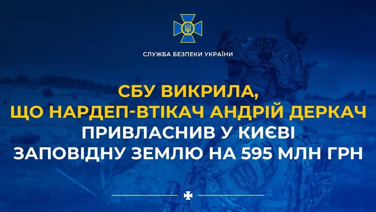 Викрито масштабну схему привласнення земель природно-заповідного фонду Києва на понад 595 млн грн. До організації злочинної оборудки причетний колишній народний депутат-втікач та зрадник України Андрій Деркач, що переховується на росії. Про це повідомила СБУ в четвер, 9 квітня.