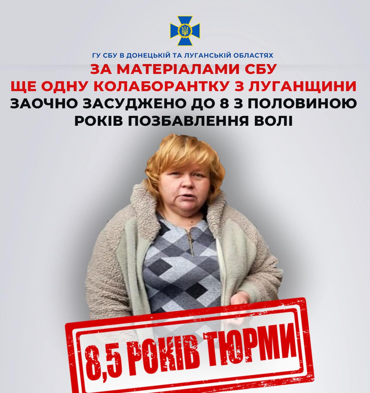 За доказовою базою Служби безпеки України суд заочно виніс обвинувальний вирок ще одній поплічниці ворога, яка перейшла на бік агресора заради кар’єри в окупаційній адміністрації в Новоайдарі Луганської області. Про це повідомила пресслужба СБУ в Луганській області.