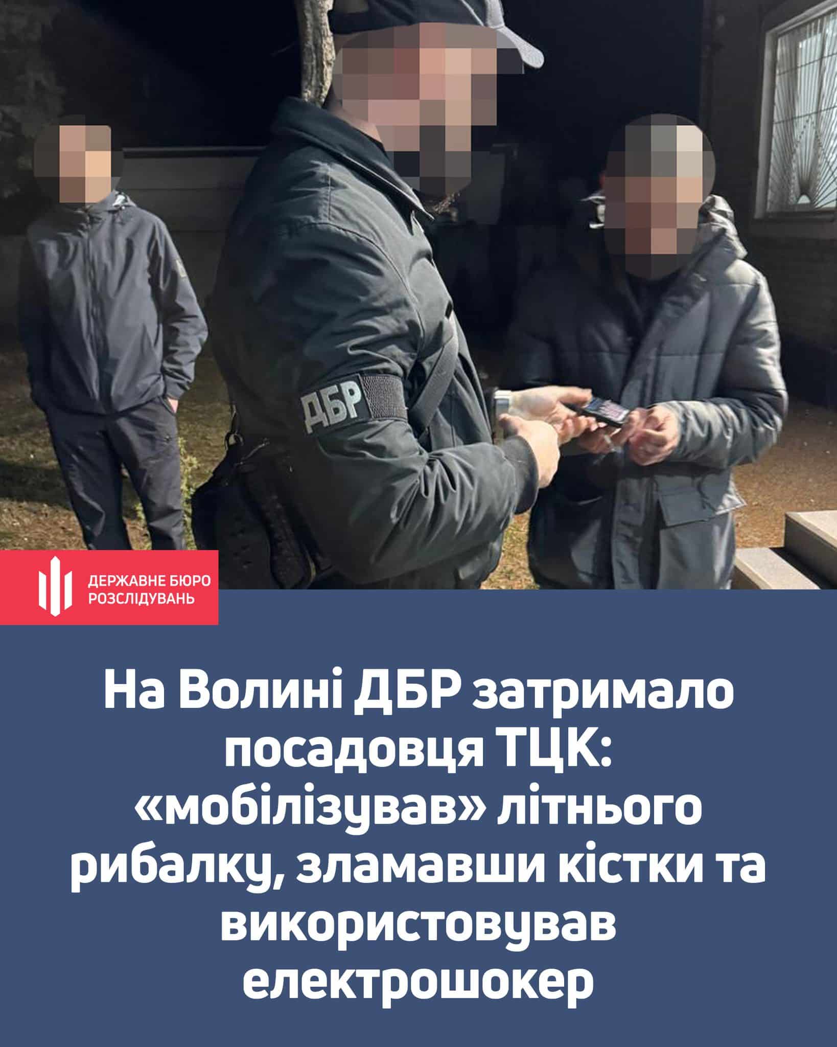📢 «Інцидент стався 20 березня у селищі Заболоття Ковельського району. За даними слідства, троє працівників ТЦК підійшли до місцевого жителя, який рибалив, і почали застосовувати до нього фізичну силу. Попри те, що чоловік не підлягає призову за віком, вони заламали йому руку за спину та зламали кістку зі зміщенням», – йдеться в повідомленні.