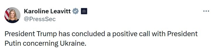 📢 «путін у розмові з Трампом підкреслив, що росія має намір тісно і плідно співпрацювати зі Сполученими Штатами з метою пошуку миру», — заявив представник кремля.