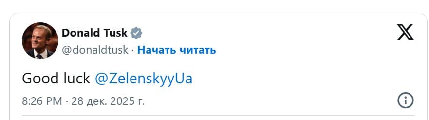 Прем’єр-міністр Польщі Дональд Туск надіслав лаконічне, але важливе повідомлення шостому президентові України Володимиру Зеленському напередодні його зустрічі з главою Білого дому Дональдом Трампом у резиденції Мар-а-Лаго.