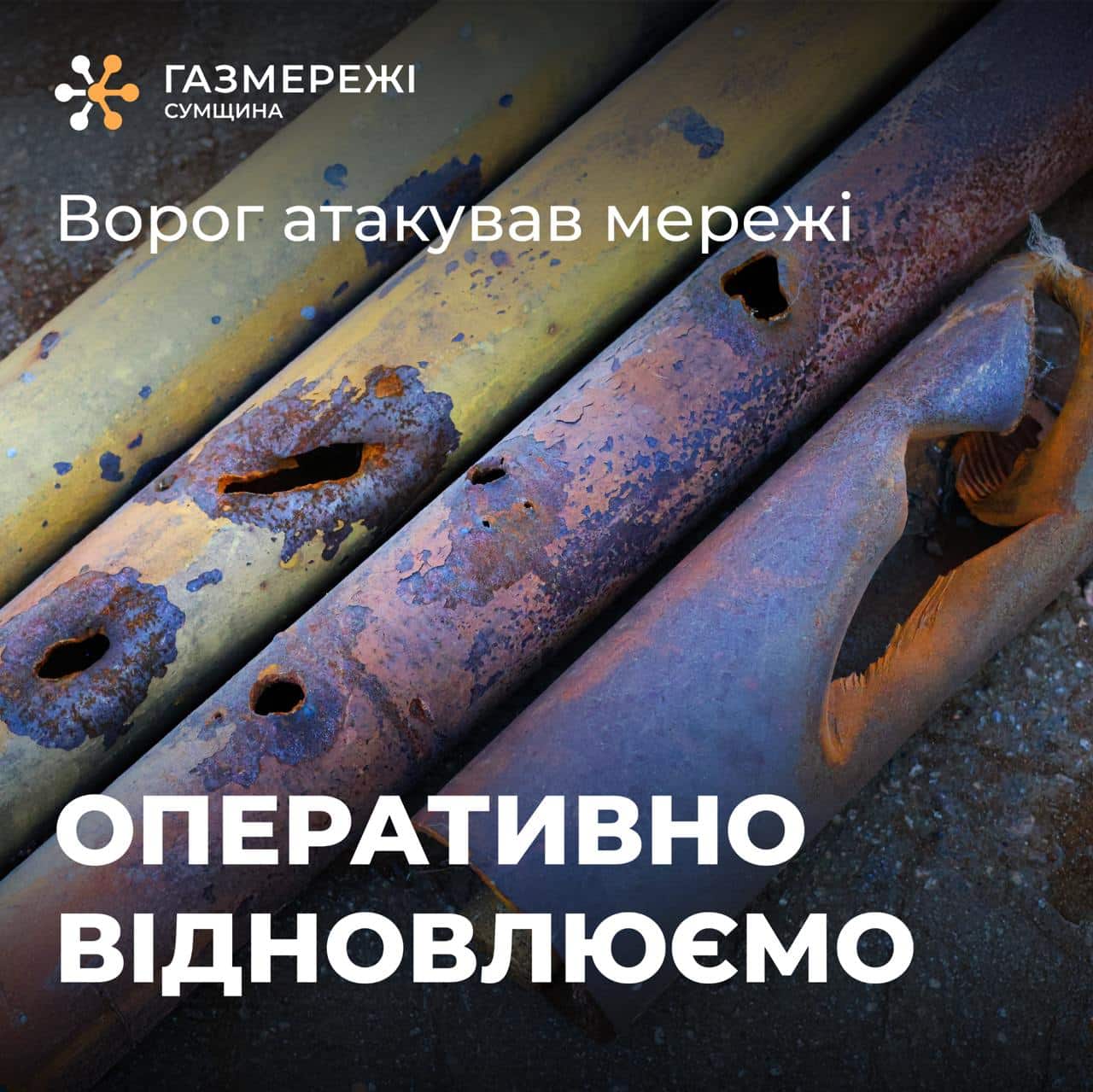 Пізніше «Газмережі» доповнили офіційну інформацію та зазначили, що ворог не полишає спроб залишити Середину-Буду без газу, атакуючи місто вже втретє від початку року.