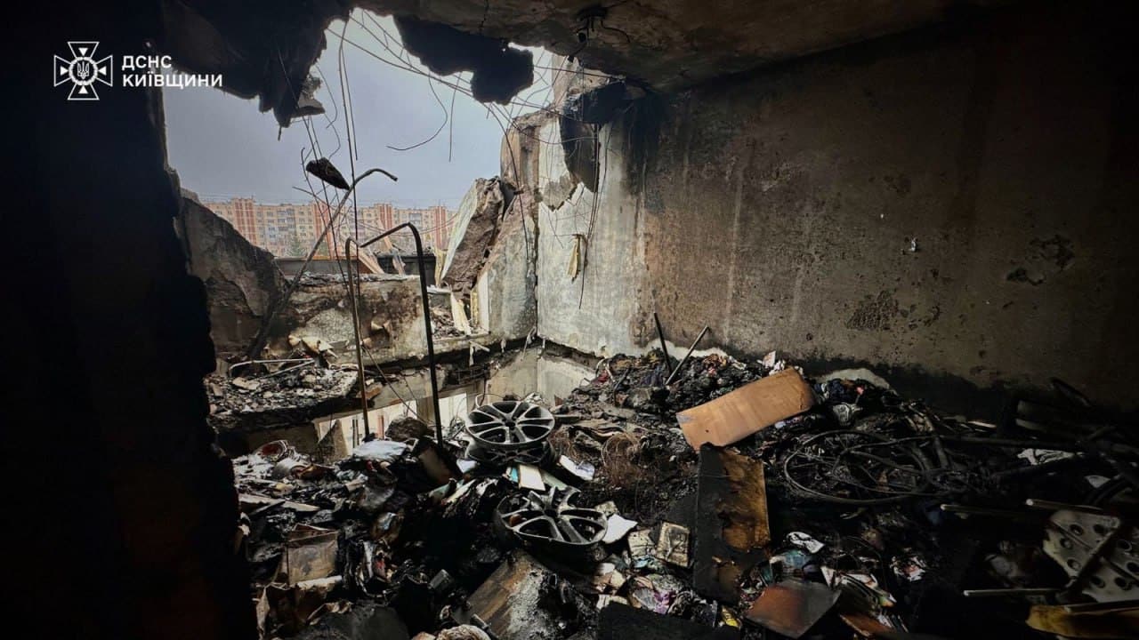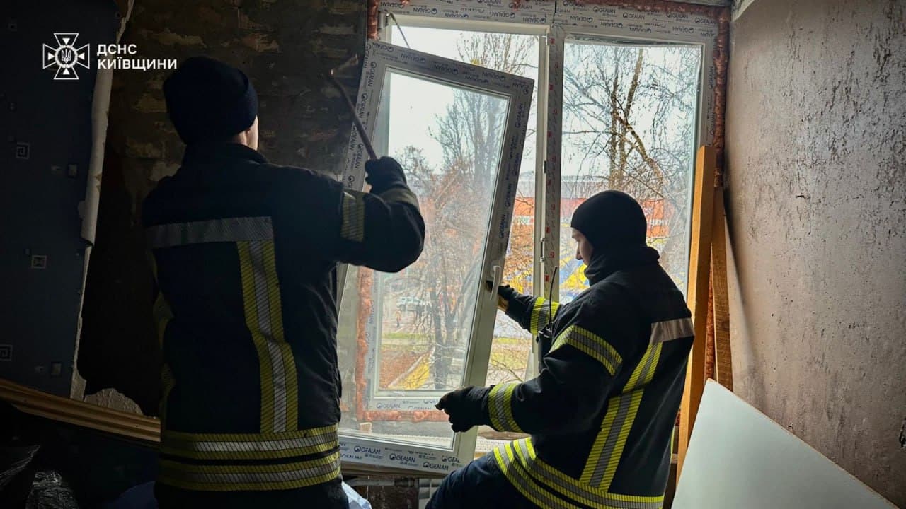 У регіоні рятувальники ДСНС продовжують допомагати мешканцям житлових будинків, що зазнали руйнувань через масовані удари. У Броварах найбільш постраждали квартири на 8–9 поверхах — саме в ці рівні влучив «шахед».