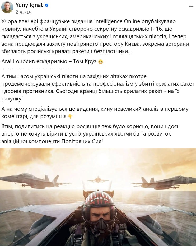 17 лютого Юрій Ігнат прокоментував повідомлення видання Intelligence Online, яке стверджувало про створення в Україні «міжнародної ескадрильї» F-16 за участю іноземців.
