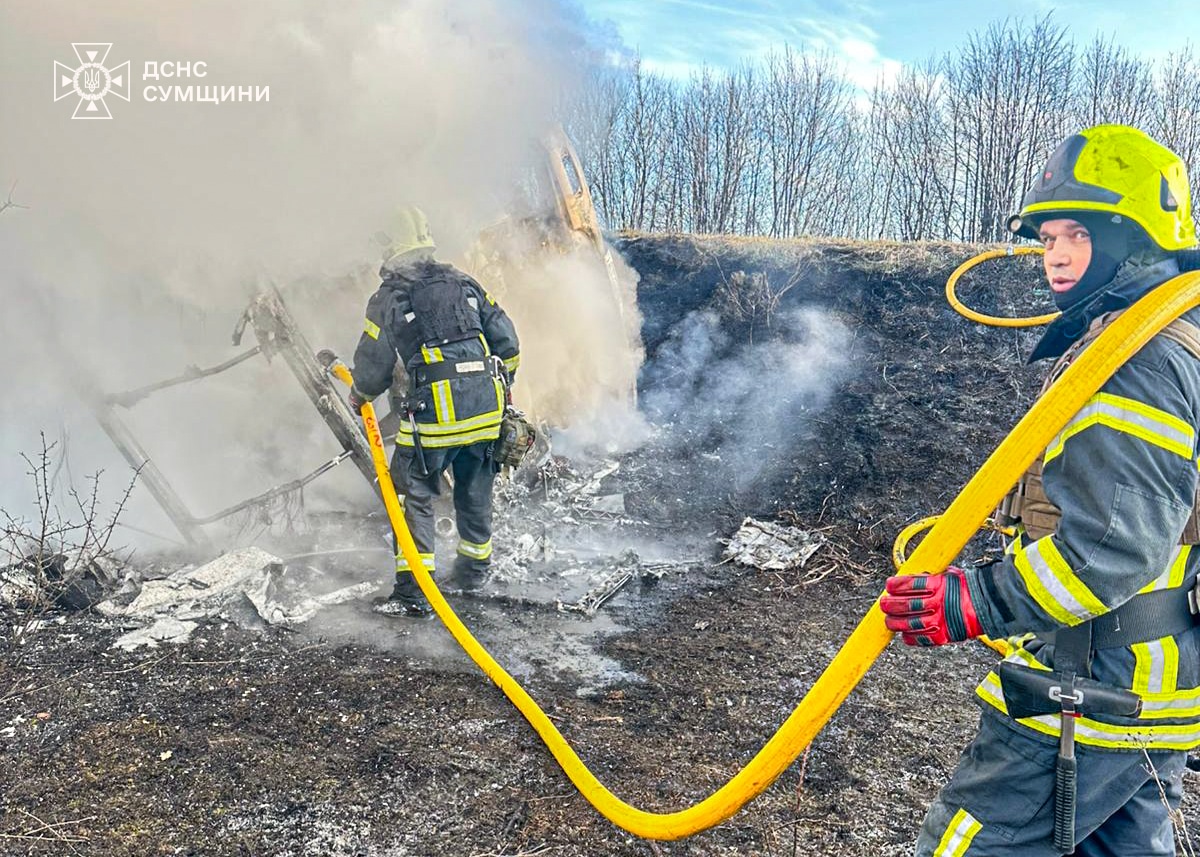 - У Верхньосироватській громаді внаслідок атаки загорівся вантажний автомобіль. Рятувальники працювали на місцях влучань. Пожежі ліквідовано.