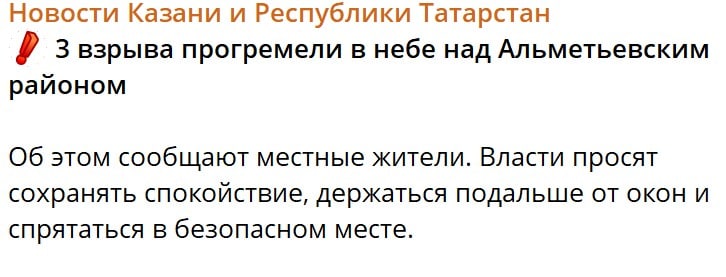 У свою чергу журналіст Андрій Цаплієнко повідомив у Telegram, що в Татарстані «українські “шахеди” просто зараз атакують місця збірки “шахедів”».