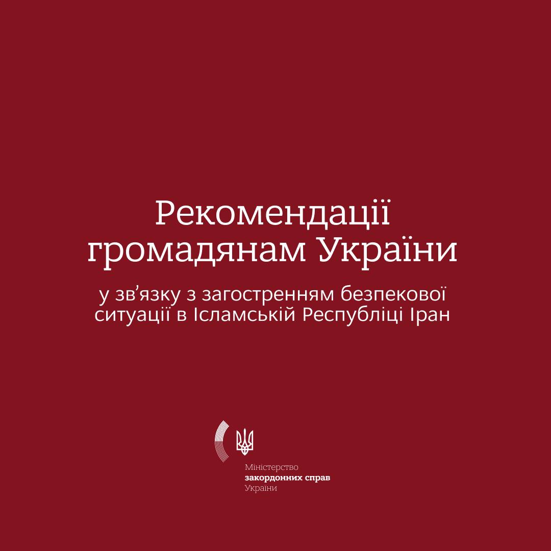 📢 «У зв’язку з ускладненням безпекової ситуації на території Ісламської Республіки Іран Міністерство закордонних справ України рекомендує громадянам України залишити територію Ірану», — зазначається в заяві.