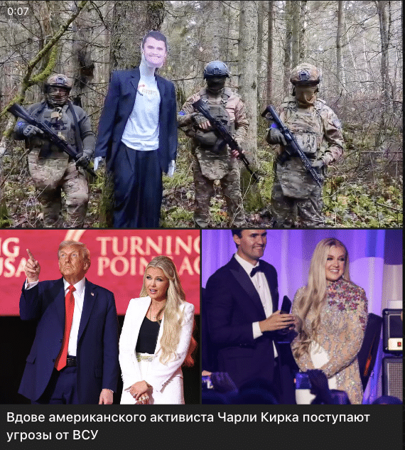 У проросійському сегменті мережі поширюється відеоролик, в якому українські військові нібито погрожують дружині вбитого американського активіста Чарлі Кірка, якщо та буде продовжувати висловлюватися щодо України в стилі риторики її чоловіка. Люди у військовій формі і з закритими обличчями заявляють, що якщо Еріка Кірк закликатиме передати українські території Росії, то вона закінчить так само, як і її чоловік. На цих словах один з чоловіків збиває автоматом голову манекену з обличчям Кірка.