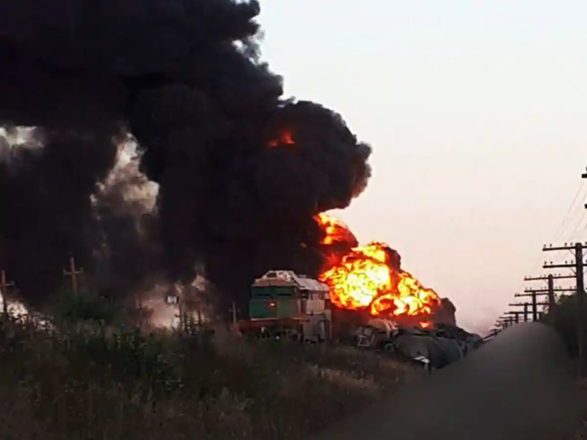 Кадри знищення російського потягу з пальним на окупованій частині Запорізької області pic.twitter.com/5YTD2ISImO