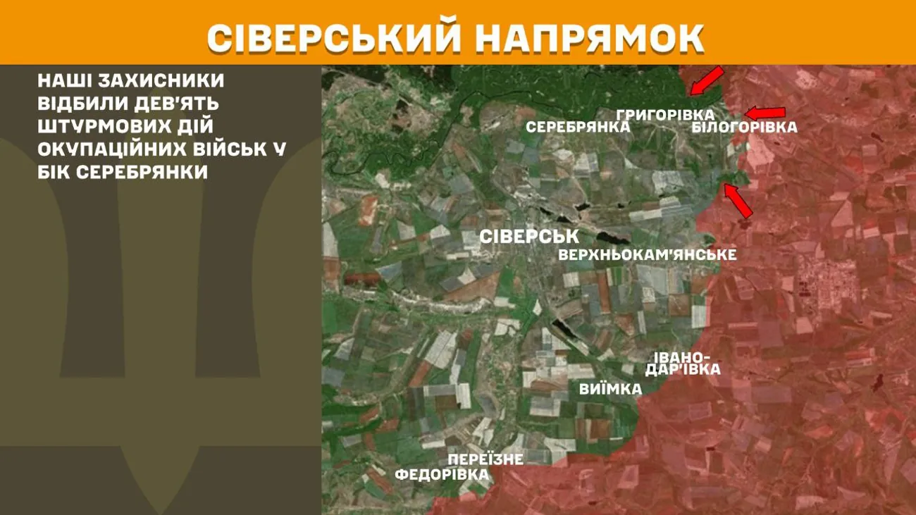 На Сіверському напрямку наші захисники відбили дев’ять штурмових дій окупаційних військ у бік Серебрянки.