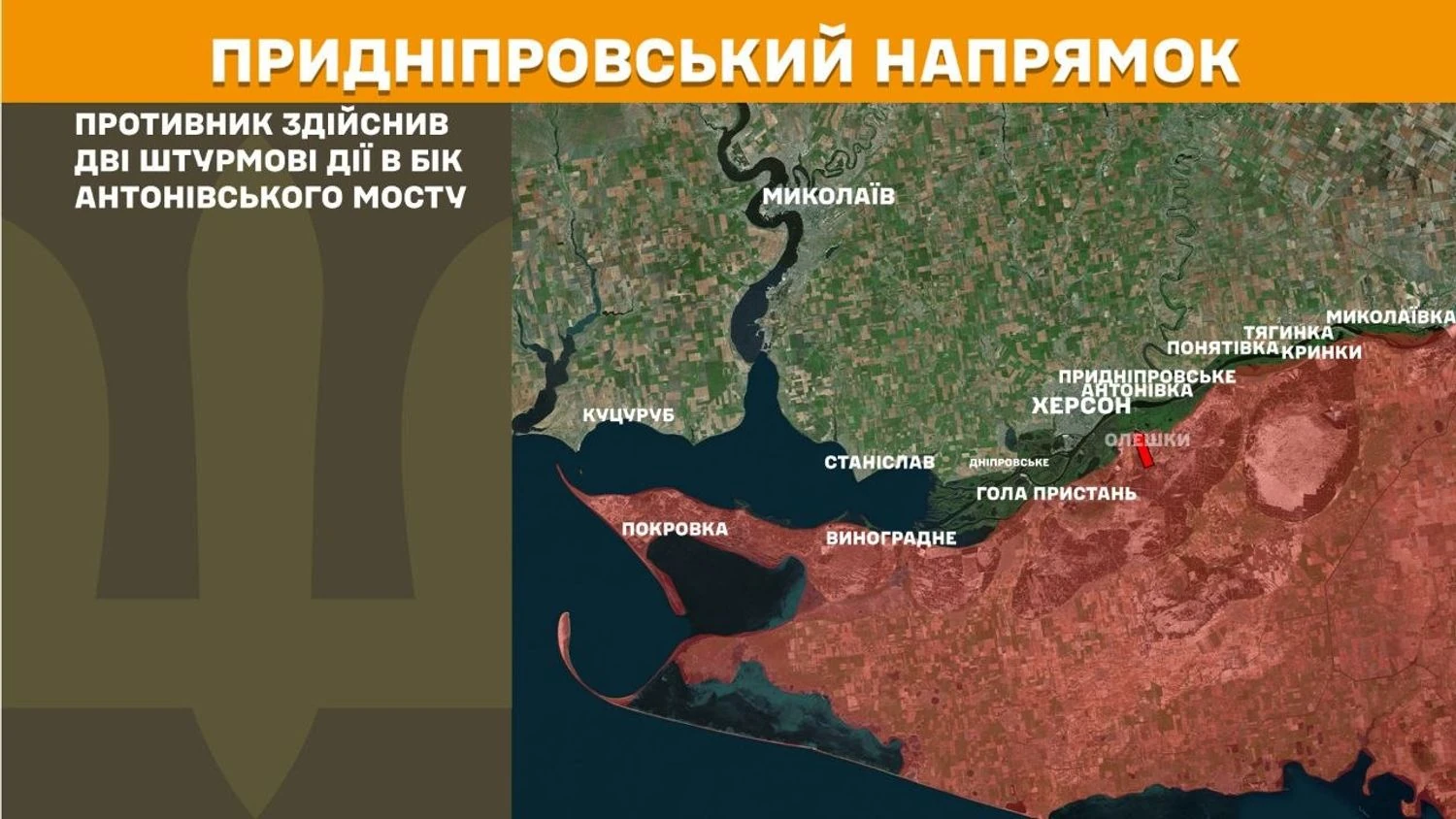 На Придніпровському напрямку противник здійснив дві штурмові дії в бік Антонівського мосту.