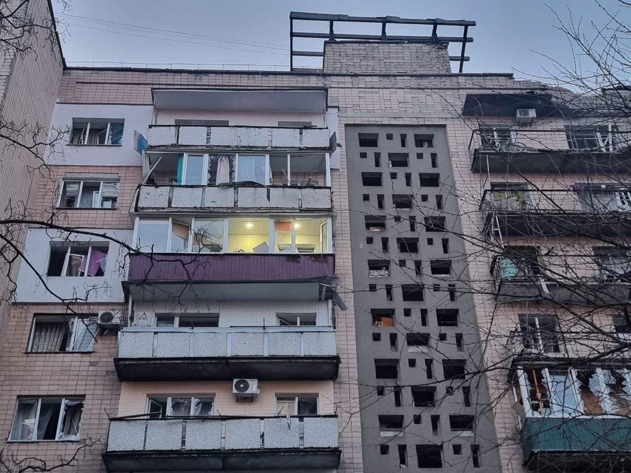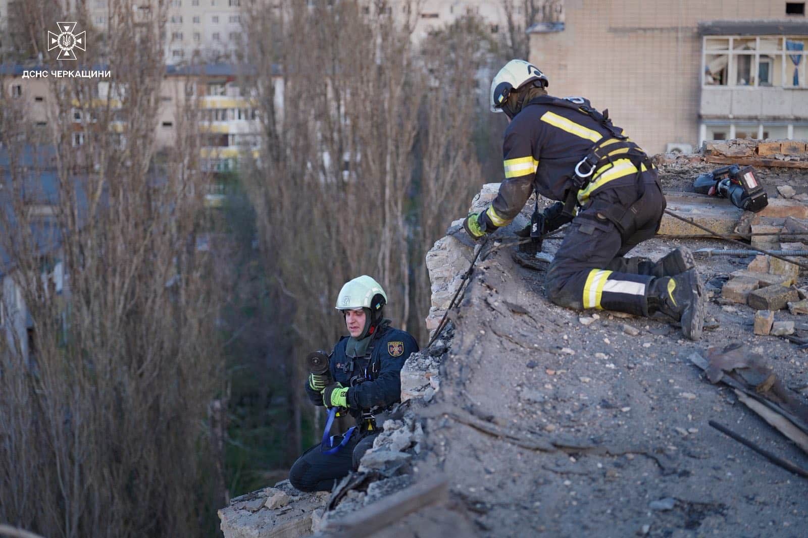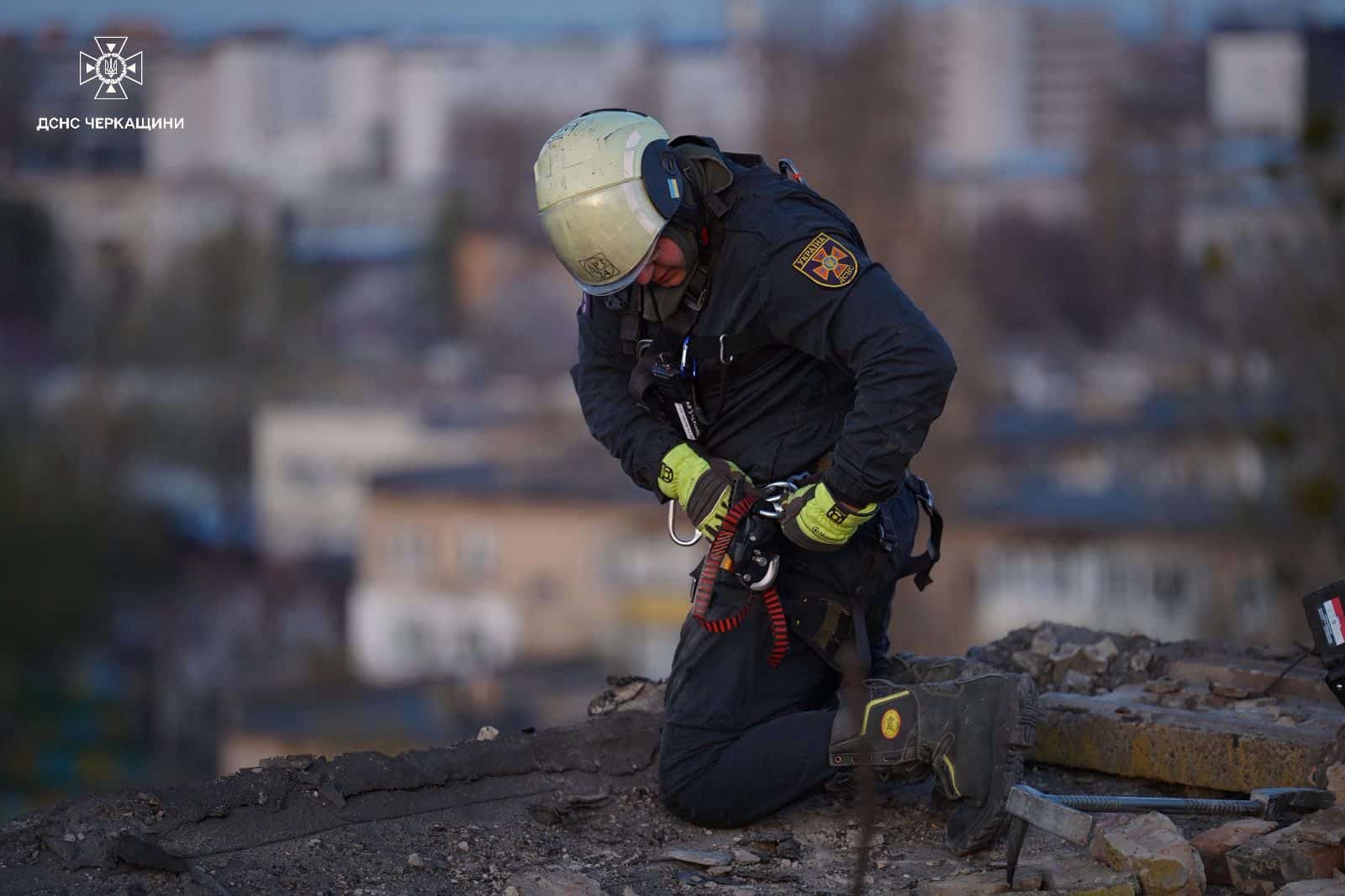 У Черкасах також зафіксовано значні руйнування цивільної інфраструктури. За попередніми даними, вибухова хвиля та уламки пошкодили щонайменше чотири багатоповерхові житлові будинки.