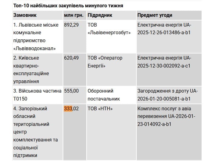 Запорізький обласний територіальний центр комплектування та соціальної підтримки (ТЦК та СП) уклав договір на авіаперевезення іноземних добровольців загальною вартістю 333 мільйони гривень. Про це повідомляє проєкт «Наші гроші».
