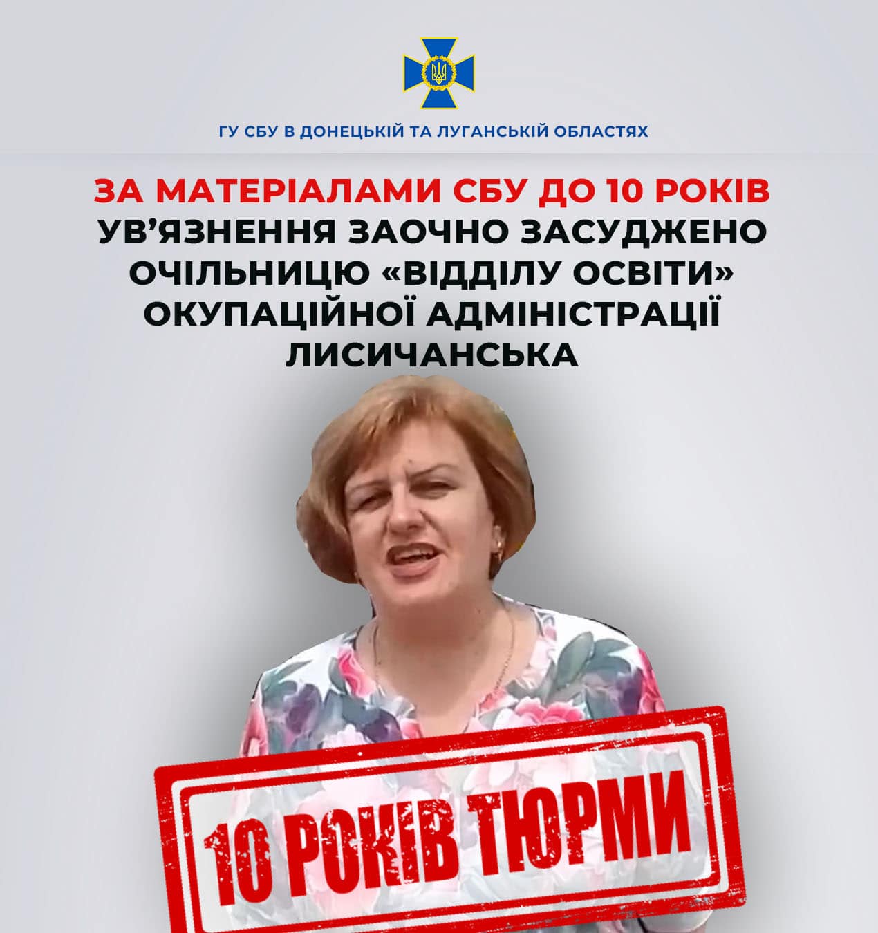 👉 Також нагадаємо, що за матеріалами, зібраними Службою безпеки України, суд виніс вирок колишній начальниці відділу Станично-Луганського районного центру зайнятості населення, яку викрили у співпраці з окупаційною адміністрацією.