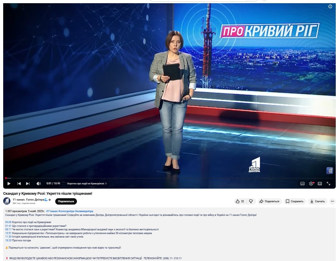 Йдеться про матеріал «Скандал у Кривому Розі: Укриття пішли тріщинами!» програми «Про Кривий Ріг», опублікований на YouTube 5 листопада 2025 року. У сюжеті розповідалося про нові протирадіаційні укриття, збудовані в кількох навчальних закладах Кривого Рогу. Об’єкти офіційно відкрили у вересні 2025 року, однак уже за місяць після сильної зливи було зафіксовано тріщини в армованому бетоні бігових доріжок та чаші стадіону, які розташовані над укриттями.